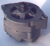 The Alternator: We begin with a Delco-Remy automotive alternator. This particular model is the 10-DN, which uses an external voltage regulator. This alternator was used on GM vehicles in the 60's and 70's. The alternator disassembles fairly easily, and the stator (as shown) is simply removed.
